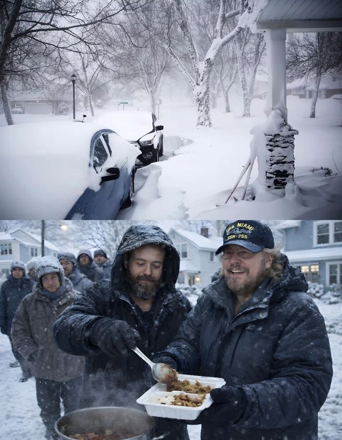 While roads emptied and cities slowed under heavy snowfall, the father and son stepped into the cold, braving harsh winds and freezing temperatures to reach homeless communities often forgotten during extreme weather. There were no cameras, no announcements, and no prepared statements. What they carried instead were warm meals, steady hands, and a simple willingness to be present.
