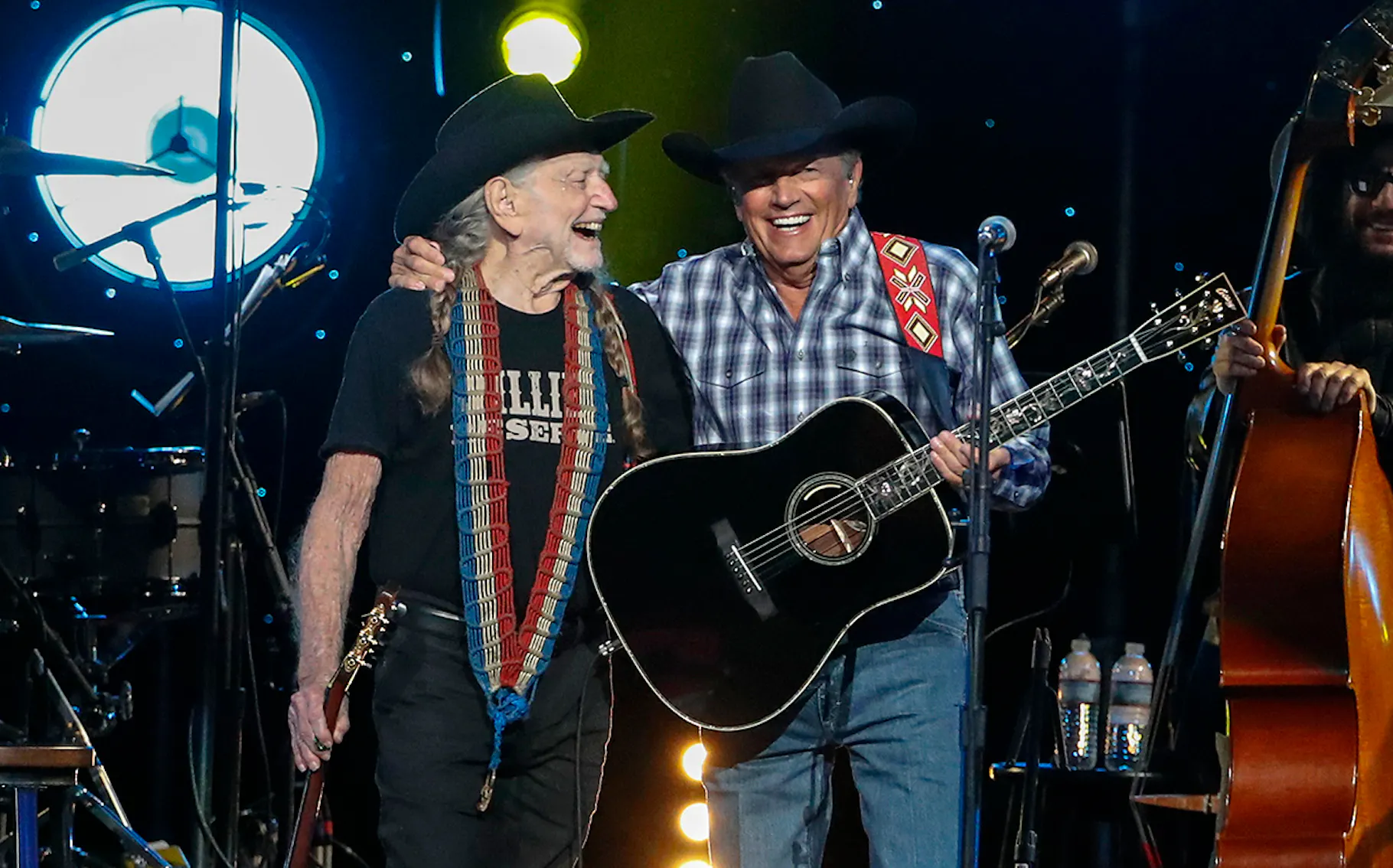 Fittingly, their collaboration debuted in a way that merged tribute and novelty. Near the end of the four-hour celebration, George Strait joined Nelson on stage to unveil their co-written song, “Sing One With Willie,” a track that will appear on Strait’s upcoming album Honky Tonk Time Machine. The song, written with George’s son Bubba Strait and producer Buddy Cannon, struck a balance between lightheartedness and homage.