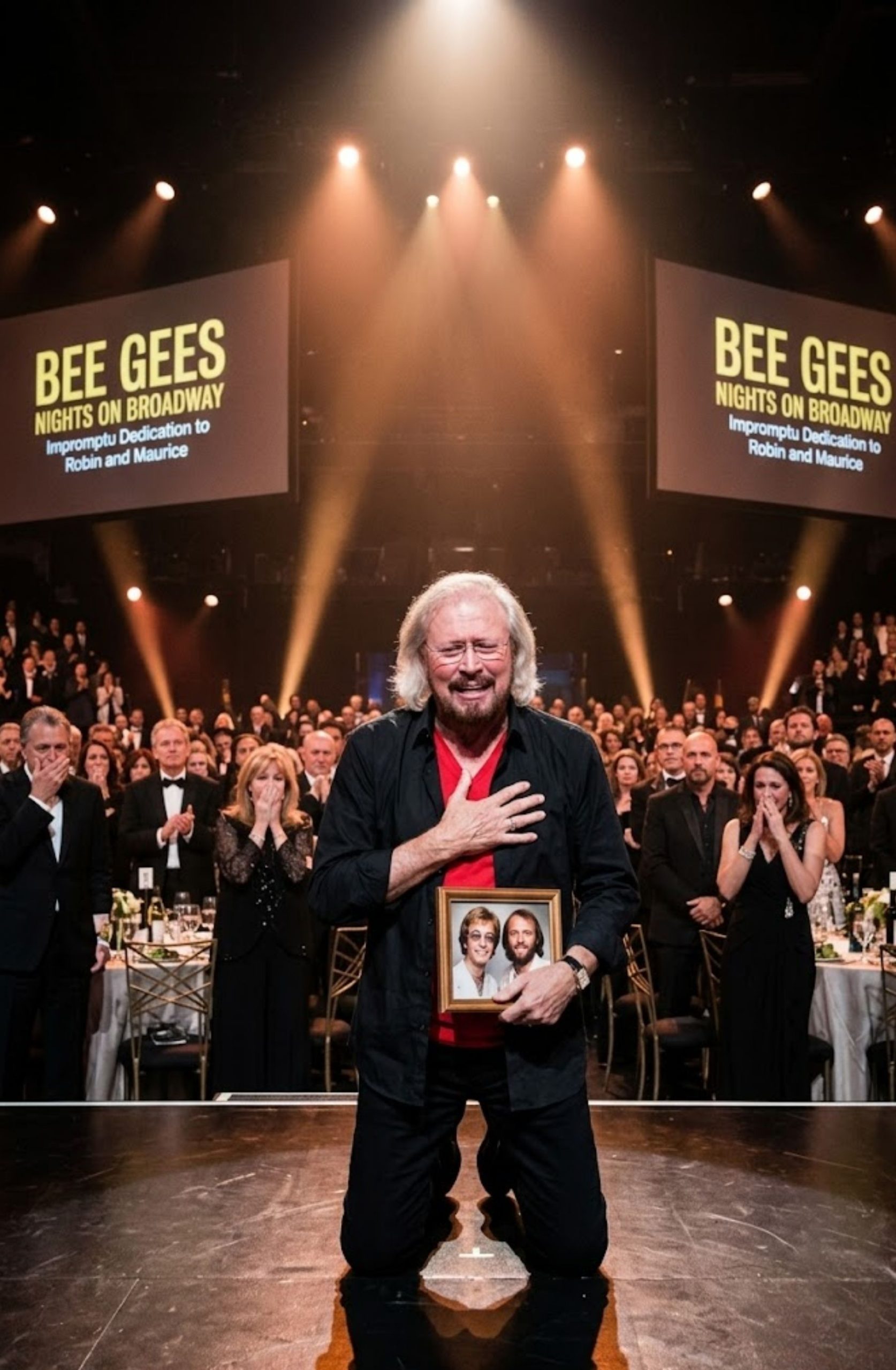 For Barry Gibb, the Bee Gees were never just a group. They were a life lived together, a journey that began long before fame and continued through every success and every challenge. Standing alone on that stage, holding the image of his brothers, he was not just remembering them—he was bringing them into the moment.