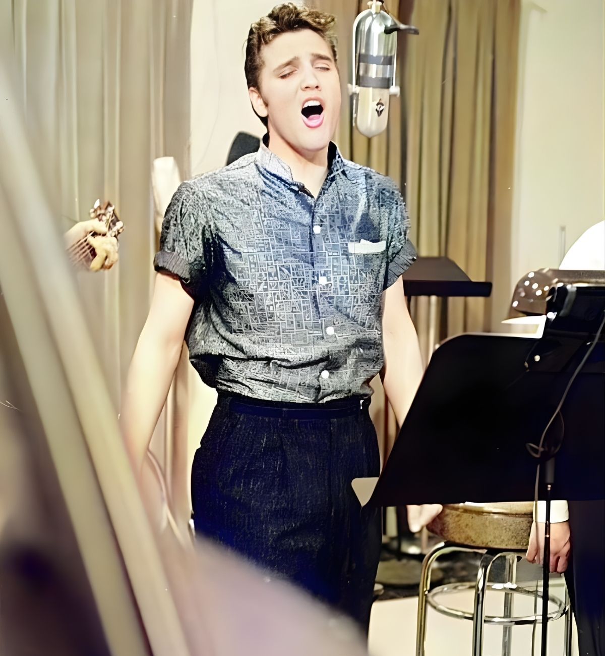 Inside the small Sun Records studio, there was no audience. No applause. Just a microphone, a recording machine, and a young man standing alone with his thoughts. Elvis sang softly, carefully, allowing the emotion to lead rather than force. His phrasing lingered. His voice carried warmth, but also hesitation — not weakness, but humility.