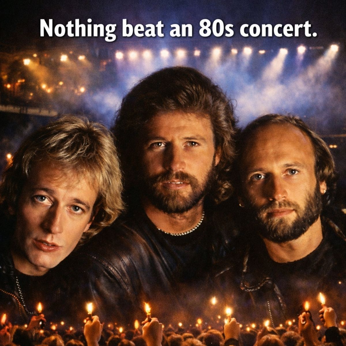 It was a night charged with pure electricity, the kind that lives on in memory long after the lights go dark. In the 1980s, when the Bee Gees stepped onto a massive stage, comparison simply fell away. They gave everything they had—voice, breath, and belief—to a roaring sea of fans who answered every note with unwavering devotion. The lights burned bright and relentless, harmonies rose and locked together with effortless precision, and each chorus landed like a shared heartbeat, perfectly timed and deeply felt.