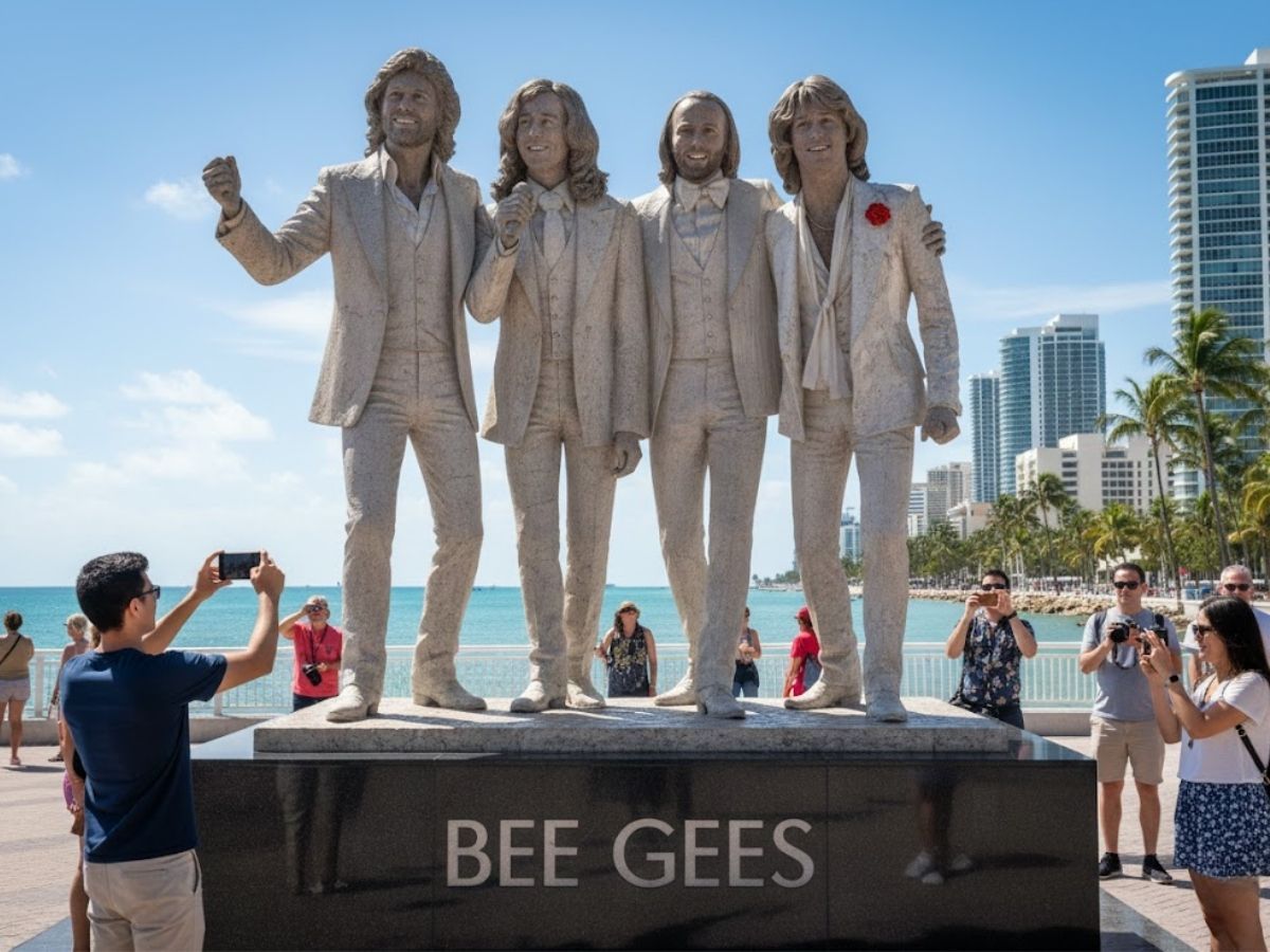 The location has only intensified the reaction. Miami holds a powerful place in the Bee Gees’ story, particularly in their later years. To see the brothers immortalized there — facing open space, light, and horizon — feels intentional, even poetic. Fans have described the statue as “silent but loud,” “unfinished yet complete,” and “impossible to scroll past without stopping.”
