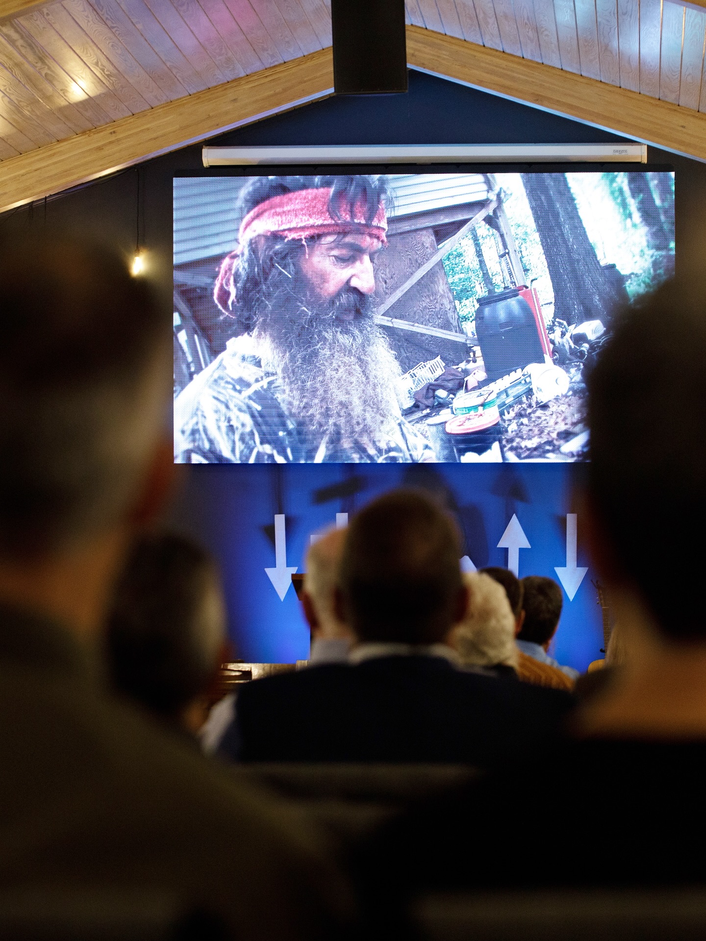 Video montages featuring family memories, sweet moments between Phil and Miss Kay, and tributes to his passion for Christ and the outdoors.
